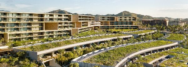 Sordo Madaleno Arquitectos在墨西哥加利福尼亚海湾南端的山脚下,设计了一个曲折的沿海建筑群,与周围环境融为一体。St Regis Los Cabos度假村由一系列阶梯式、交错的体量和梯田组成,位于一个12.4公顷的场地内,南邻太平洋,东临著名的高尔夫球场。