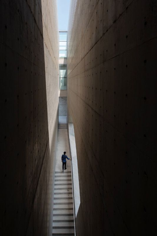 由于受到外界的保护,这座内向型建筑的每个项目都有两到三个内部庭院。从前院开始,游客可以在所有的内院里闲逛,而不会中断房间的连续性。沿着受保护的公共环路行走,客人可以时而在一楼,时而又到了二楼或三楼,这些空间是不可预测的,而且光线和阴影的变换发挥了很大的作用。