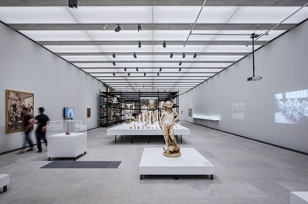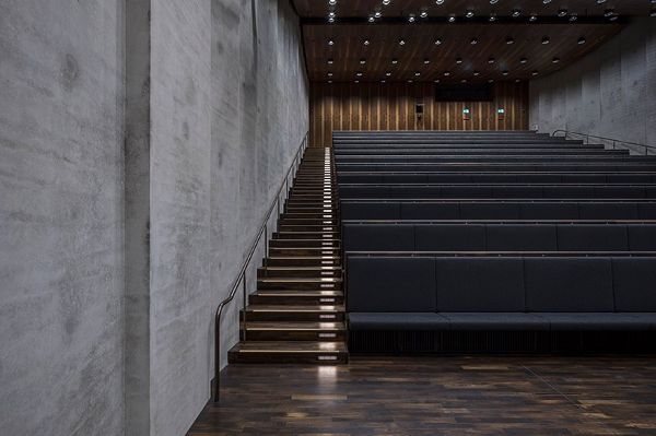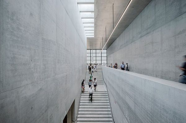 裸露的混凝土墙在楼下的夹层继续延伸,该层设有博物馆商店、衣帽间、卫生间和储物设施。地下室层设有一个300座的大礼堂和临时展览空间。 JUNG LS990点亮了詹姆斯·西蒙美术馆的所有内部空间。