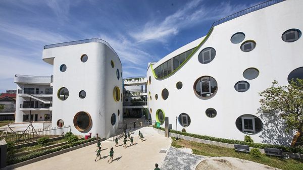LAVA(视觉建筑实验室)在越南完成了一个新的生态幼儿园,它的空间能够激发孩子的好奇心,让孩子乐于进行基于活动的学习和与自然的互动。该建筑位于越南河内附近的荣市,被称为“EcoKid”,它是一座三层的半圆形建筑,三层建筑通过桥梁相连,形成一系列相互连接的室内和室外空间,既有趣又安全,同时又使建筑更具特色。