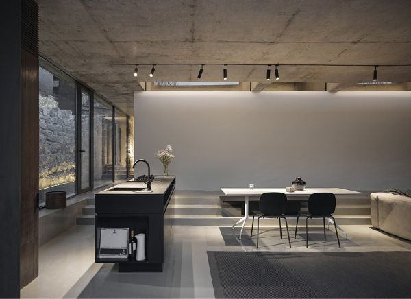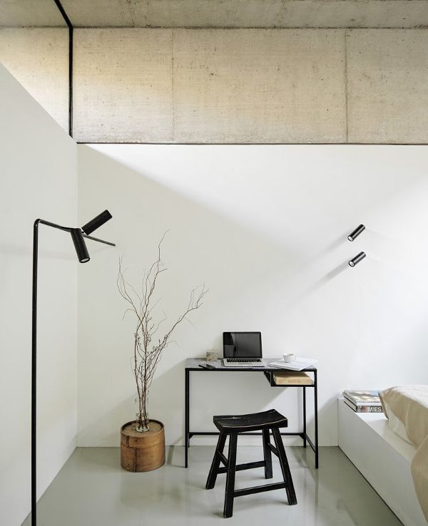 卧室位于较高的屋顶下,其高高的天花板和窗户给人一种沉思的感觉。它们通过一个通道连接起来,通道通过三个台阶升高到相邻的生活区。在卧室旁边的东南角,有一条廊道把新房子和现有的住宅楼连接起来。在这个项目中,建筑和室内装饰都能将光线四处反射,形成一个富有趣味的空间。过去的结构和功能是可见的,突出了新旧之间的呼应。这种设计是光与材料、空隙与固体之间的一种平衡。雕刻出空洞以引导光线,而固体元素则为空间带来了实体感。