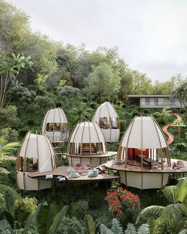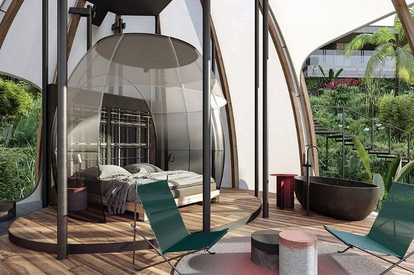 ARCHWERK是“Coco”和“Wing”背后的建筑师,建筑师MartinA Tomas也致力于后者。由Dagmarštepánová领导的Formafatal负责该项目的室内设计和外部装饰。“Coco”被认为是“豪华巢穴”,由五个独立的锥形结构组成,这些结构与开阔的露台相连,进一步模糊了内部和外部生活空间之间的界限。一旦完成,该场地还将提供一个通往游泳池的滑水道。