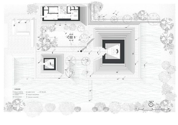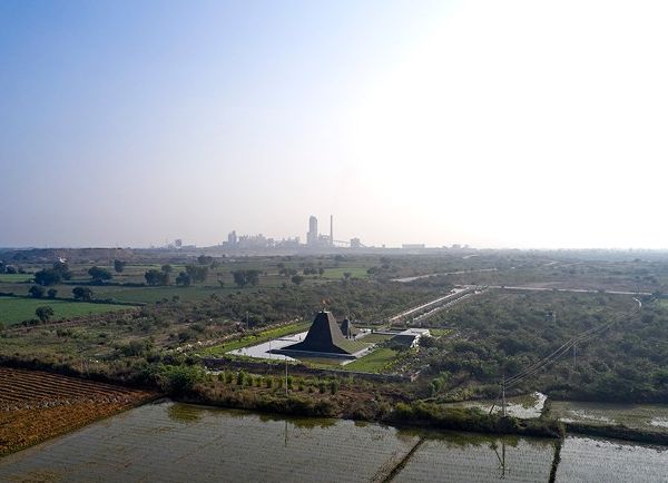 因此,从附近石灰石采石场溢出的水被引到一个低洼的补给坑。然后,设计团队将这个场景的河岸想象成一个社交空间,类似于传统的“ghat”——一段通向水体的台阶。建筑师们继续说:“这种阶梯式的水土保持是印度建筑遗产的重要组成部分,就像从古城贝纳拉斯(瓦拉纳西)的贫民窟里所看到的那样。”