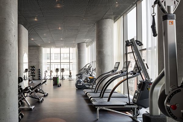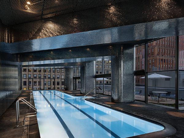 除了伦纳德56号住宅独特的外观,赫尔佐格&德梅隆也对建筑内部进行了设计,其中包括17000平方英尺的私人休闲空间。一个混凝土雕塑楼梯加入了该方案两个层次地设施,连接塔楼的第九层和第十层。居民设施包括75英尺的游泳池和毗邻的室外太阳甲板和热水浴缸,以及一个配有瑜伽室,蒸汽浴室和理疗室的健身中心。