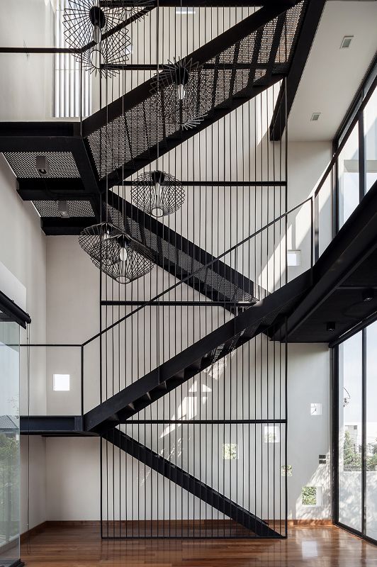所有的功能都被组织起来,并且被隐藏在矩形外壳的外部。外围护结构的连续性,完成了具有最大空隙的规则几何建筑形式,展示了宽敞的纵向空间,成为房屋的主要焦点。 卧室和起居室分布在前三层,并配有一个连接到摄影师的暗室的屋顶露台。