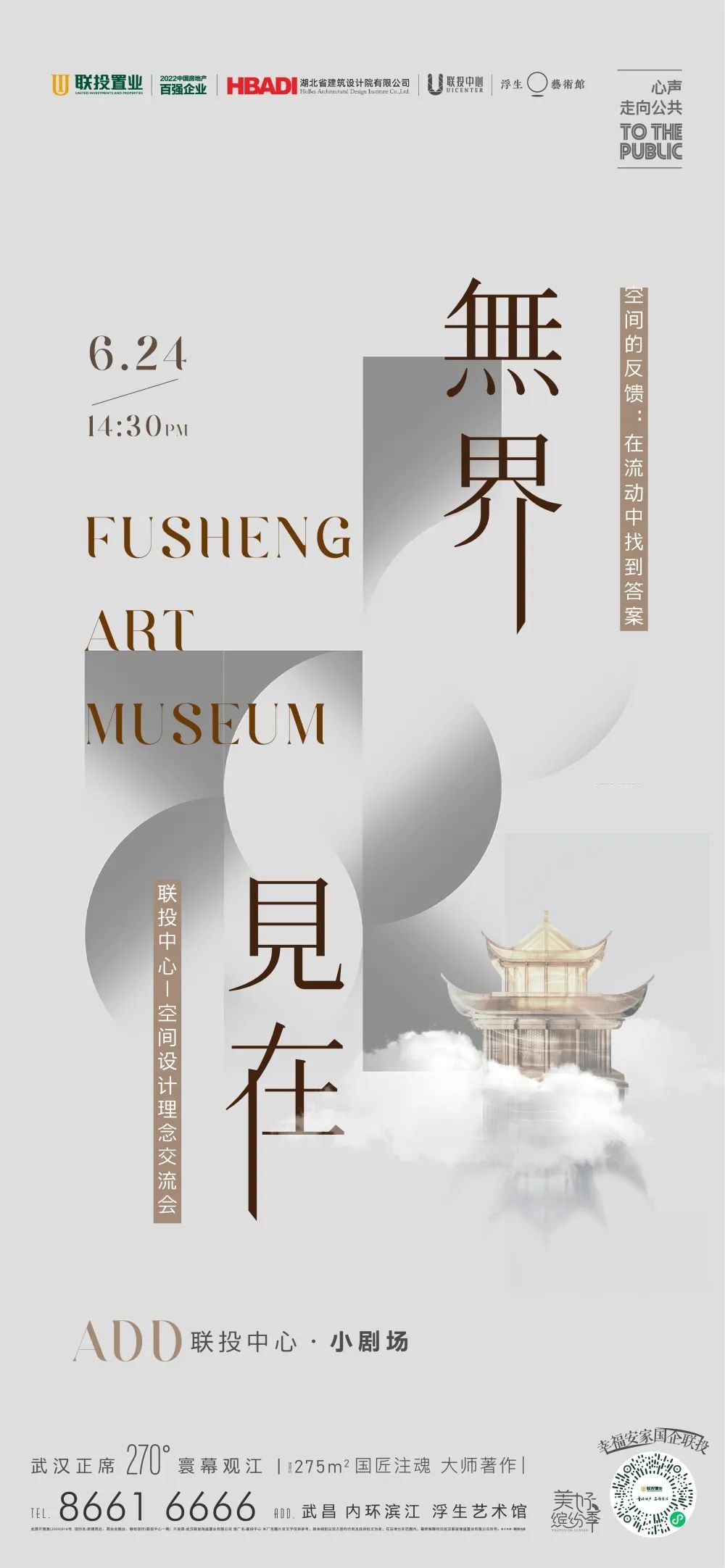 浮生艺术馆是联投置业在城市更新与功能服务方面的探索与实践,艺术馆由于舍创始人·于昭主创,寓意人生经历世事盘桓后,以归零之心审视自我,在城市寻得“偷得浮生半日闲”的精神桃源。浮生艺术馆由1F精神空间和2F生活空间构成,是集合空间/生活/社群为一体的艺术生态,以观展/品茶/藏酒/雅食/击剑等当代美学,建筑武汉新锐艺术文化空间。作为联投置业在转型升级战略下打造的高端产品系,联投中心以艺术生活化、生活艺术化为理念诠释对滨江艺术生活的新理解,以人的需求为底层逻辑,创办浮生艺术馆,让人、建筑、空间、艺术持续产生关系,将艺术与文化引入到联投中心业主的日常生活中去,与业主共建人文生活的新模式。
